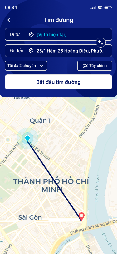Bước 3: Nhấn “Tìm đường” để bắt đầu tìm kiếm.