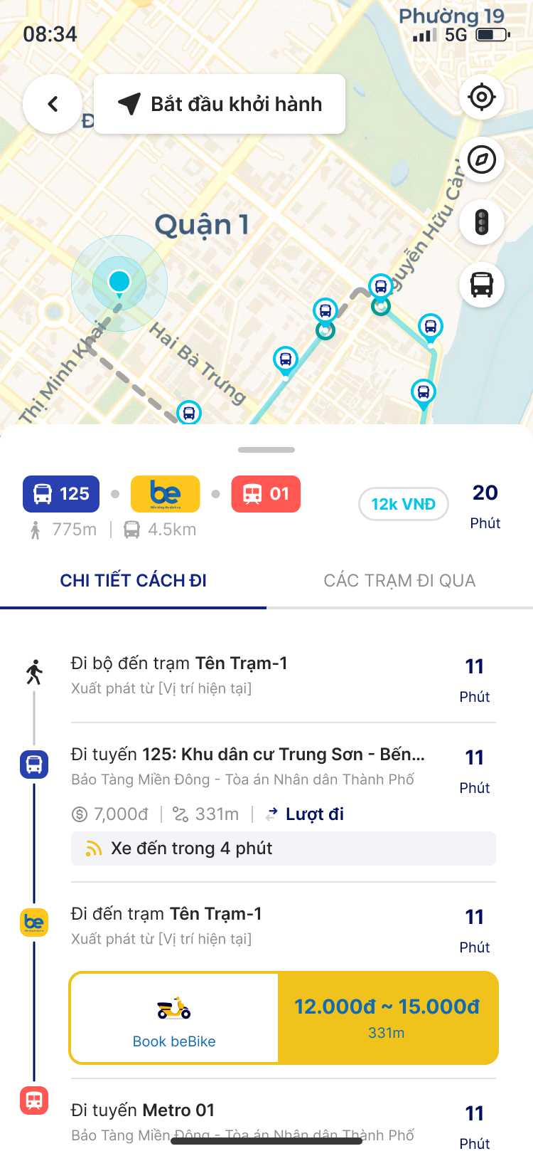 Bước 4: Ứng dụng sẽ hiển thị gợi ý di chuyển cho bạn theo nhiều hình thức khác nhau với đầy đủ các thông tin cần thiết khác