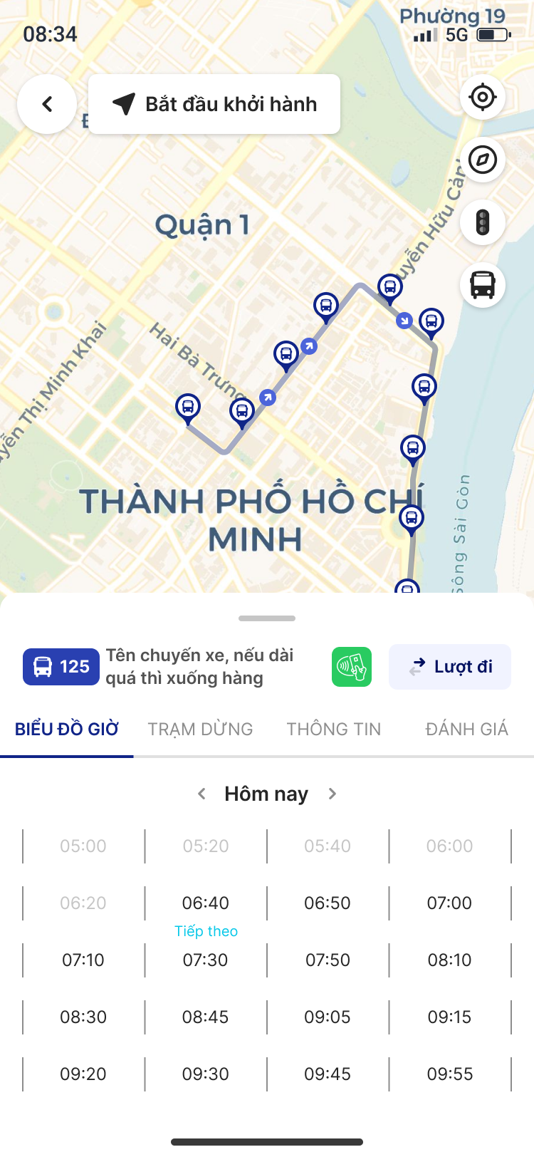 Trạm dừng: Danh sách các điểm dừng được sắp xếp theo trình tự, giúp bạn dễ dàng xác định điểm lên hoặc xuống xe chính xác.