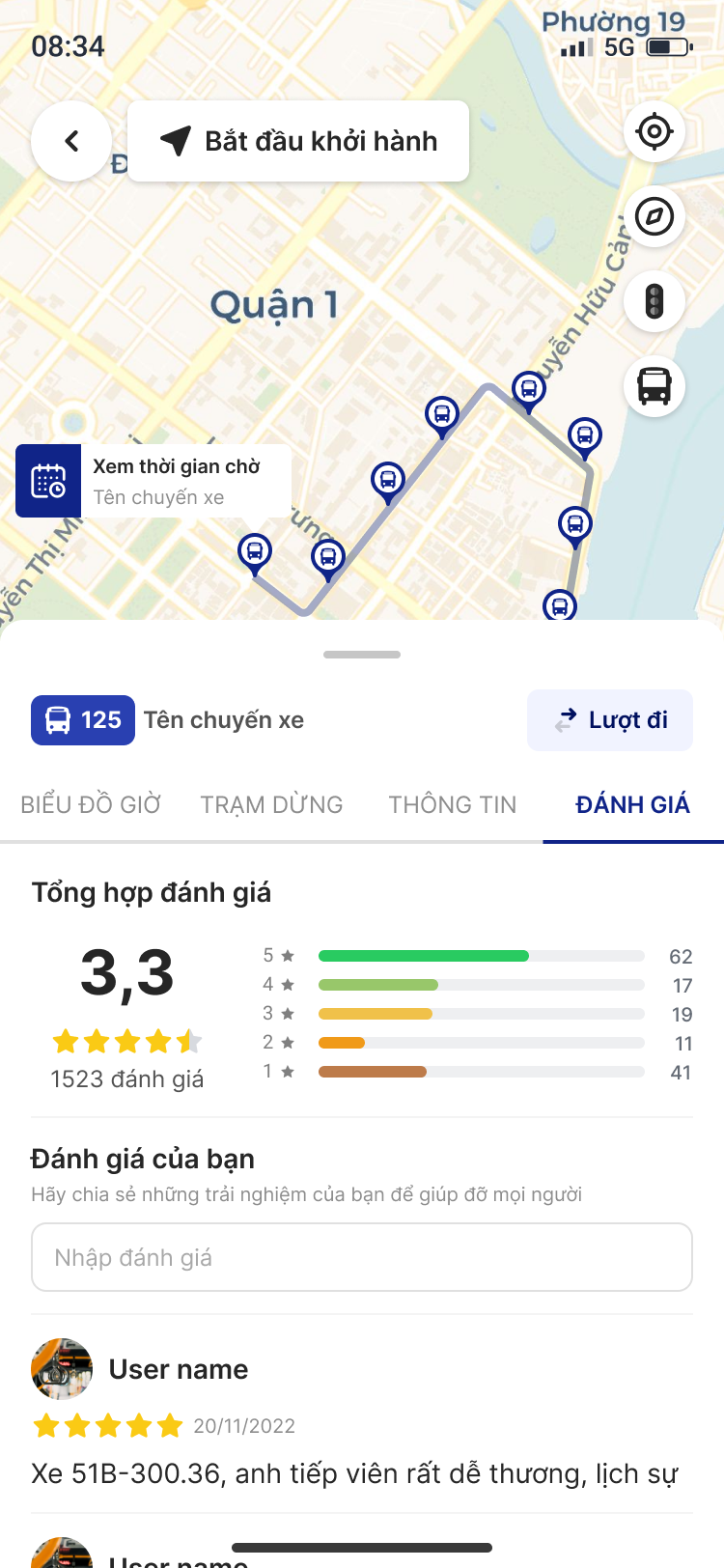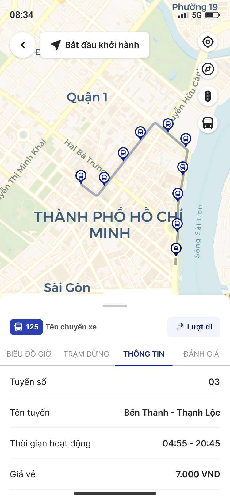 Thông tin tổng hợp: Bao gồm giá vé, thời gian hoạt động, số chuyến đi trong ngày, đơn vị vận hành, cùng những đánh giá của người dùng về tuyến xe đó.